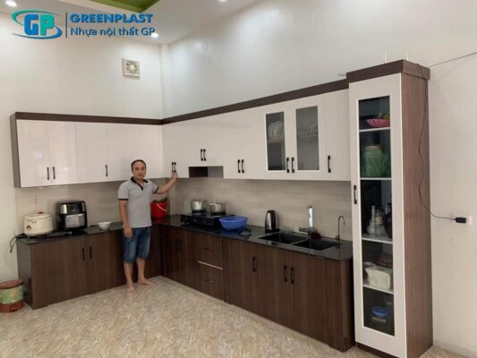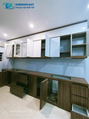 Tủ bếp nhựa GP Greenplast vân gỗ và tủ bếp gỗ công nghiệp có vẻ...