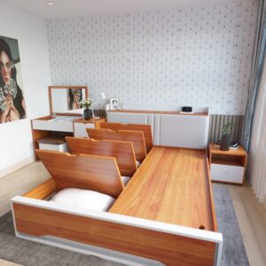 Mẫu thiết kế nội thất phòng ngủ chung cư được Nhựa Hoàng Hà thiết kế với ưu điểm :